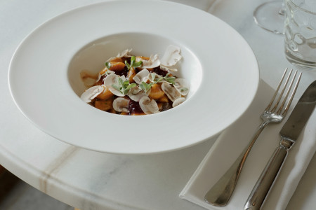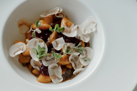 With this recipe, we invite you into the autumnal world of flavors and delights: pumpkin gnocchi with chamois ragout, sautéed mushrooms, and a hint of sweet lingonberries.
