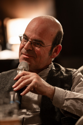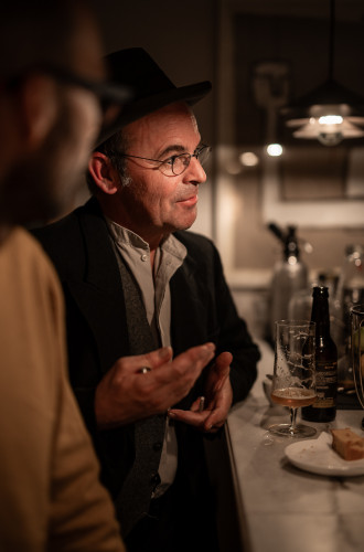 Surprisingly, the conversation continued. Gamper talked about the fact that he copies all the texts he has to work with - as an actor, but also as a director - by hand, which, he says, is how he really gets to know the texts. He writes all his own texts by hand anyway. While chatting, he tells us that he lost half of the manuscript for "100 Years of South Tyrol", a 3-hour epic commissioned by the group Dekadenz. Because there is no backup on paper, he had to go back and rewrite the text, which has certainly improved in quality, according to Gamper's self-assessment.