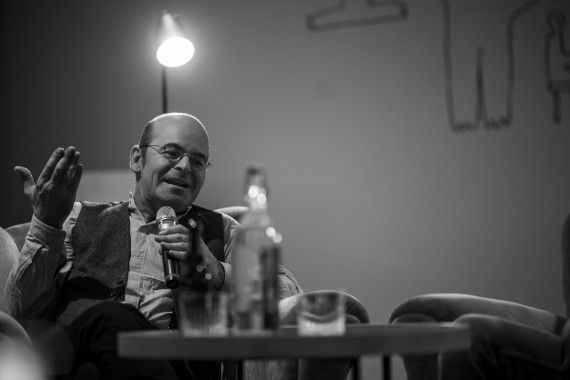 Towards the end of the interview, Hannes Egger wanted to know from Dietmar Gamper whether he preferred one of his many activities to another. In a brief outline, Gamper reported on what he finds exciting about acting, what fascinates him about directing, that he extremely enjoys playwriting because it has to do with people and that he sometimes also likes to work on lengthy visual projects.