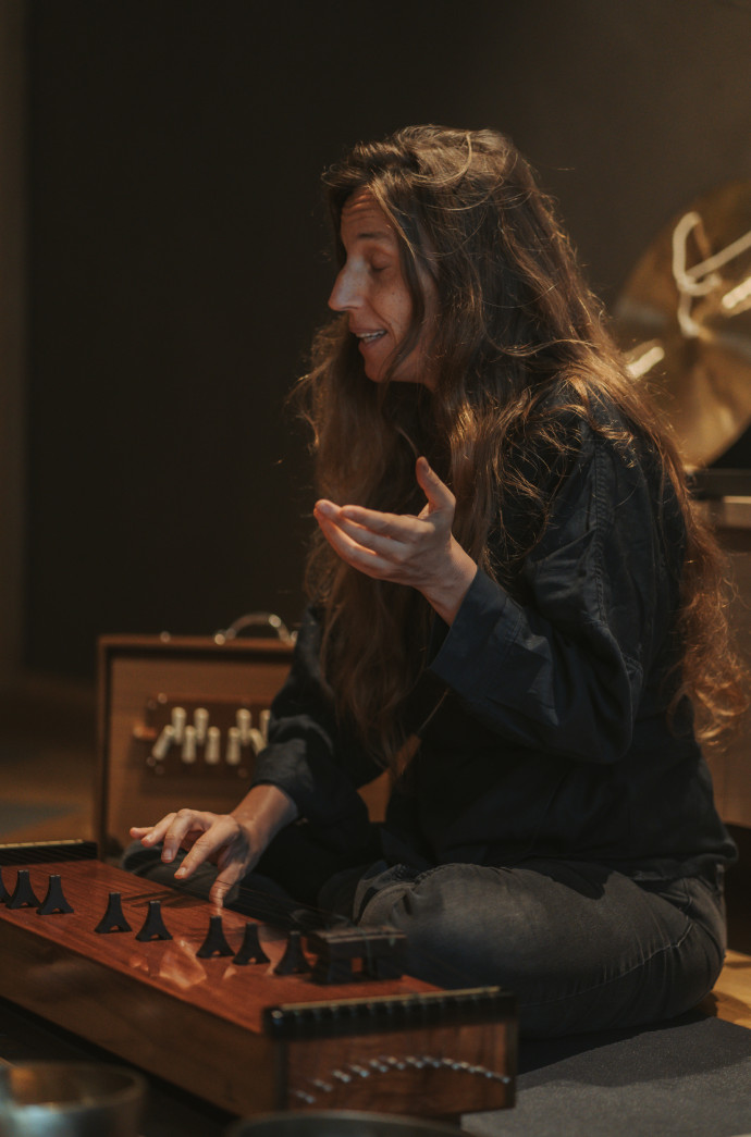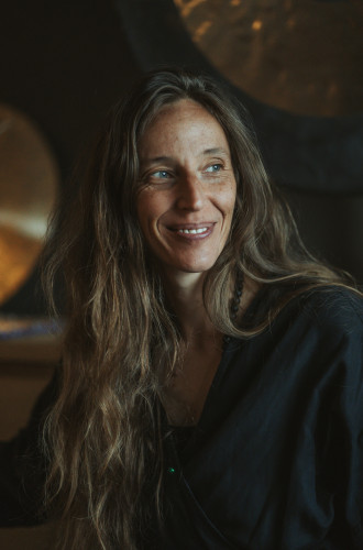 Caroline studied theatre and clown in Paris before moving to India in 1999, where she still lives in Auroville. There she studied and practised holistic singing, Carnatic singing from South India, as well as various types of yoga such as hatha yoga, nada yoga (sound yoga), tantric yoga and Sri Aurobindo's integral yoga. The exchange with her teachers and the practice with musicians, who see music primarily as an instrument of consciousness in the service of the soul, have strongly influenced her and radically changed her way of singing and living music. With this in mind, she created the musical meditation Ikaroma. Attracted by the exploration of conscious breathing and sound for physical and mental health, she trained in the lyrical bel canto singing technique; a technique that, in addition to the search for the unique colour of the voice, has a great interest in the health of the vocal cords and diaphragm. She has been singing, teaching and leading workshops in India and France for eleven years.