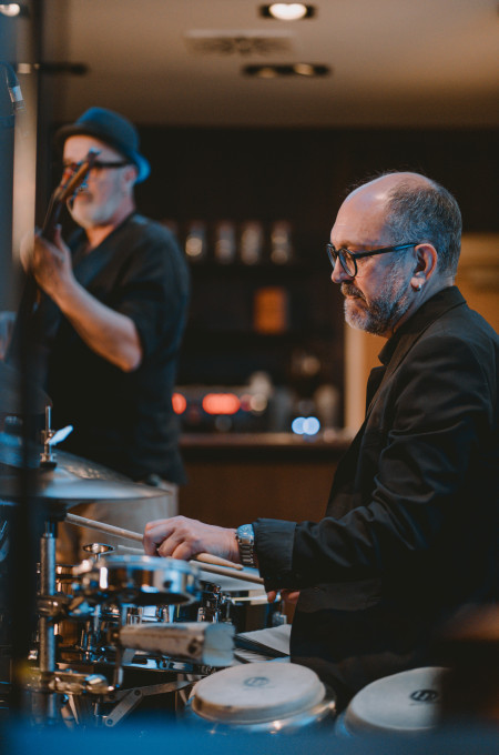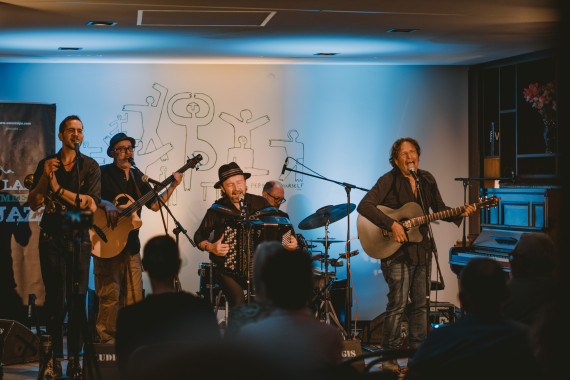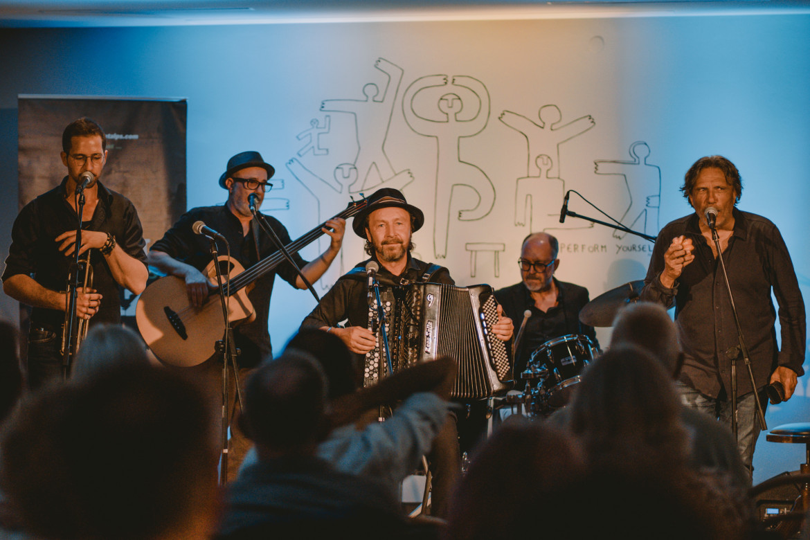 As part of Lana Meets Jazz, a concert was also held at the Hotel Schwarzschmied on 14 June. Titti Castrini Band feat. Alan Farrington (I) played international folk songs and swing of the 50s from Gorny Kramer to their own chansons.