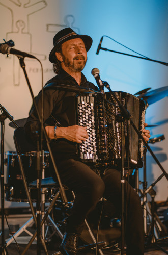 Titti Castrini began studying the button accordion at the age of 9 and took part in national and international competitions. Meeting Maestro Ivano Scattolini, an accordionist from Mantua with gypsy origins, had a decisive influence on his playing style: the reality of people's lives, the streets, nightclubs, theatres and parties are images and inspirations that are reflected in the songs.