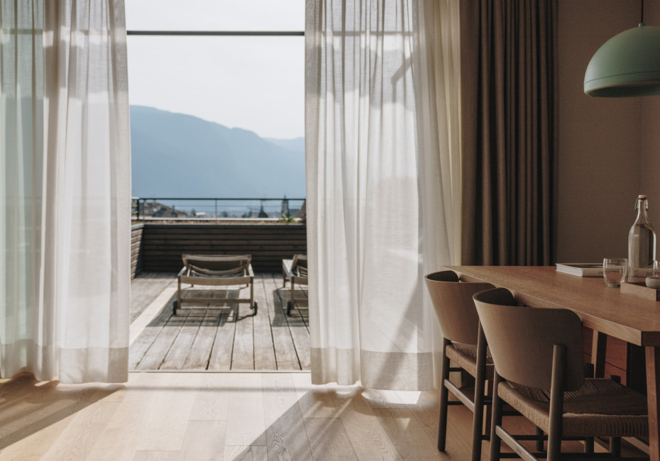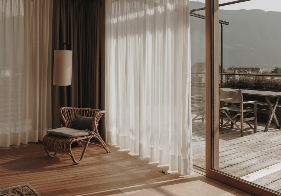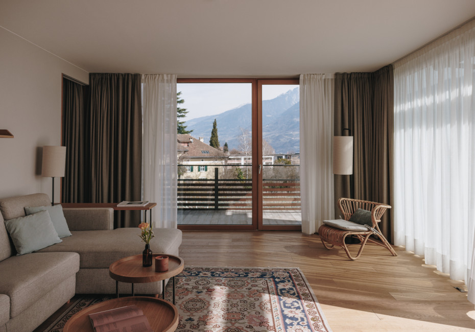 Le eleganti e confortevoli Junior Suite nuove e situate nella struttura principale, sono arredate con materiali naturali e hanno una terrazza rivolto verso sud. I pavimenti sono in legno di quercia. Nelle camere è stata allestita una piccola biblioteca, opera d’arte dell’artista Hannes Egger.